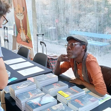 Retour en images sur la séance de dédicace de Noël Simsolo à la Belle Hortense. avec Peter Hudson et François Thomazeau